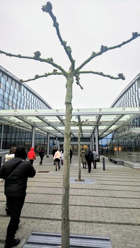 Загалом тут працює понад 4 тисячі співробітників і представників делегацій. Розташована штаб-квартира неподалік від старої – дві будівлі розділяє шосе, яке з’єднує Брюссель з міжнародним аеропортом. Аби дістатися нової споруди, представникам країн-партнерів Альянсу, серед яких і Україна (як було жартома сказано, що наразі партнери сидять у «сарайчиках» старої штаб-квартири через дорогу), потрібно йти пішки десь півгодини. Перед входом висаджена алея з дивних дерев, мають усього по шість гілок. Нам пояснили, що це яскравий приклад прозорості: згори вниз і навпаки все видно.