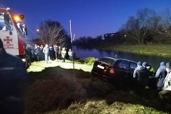 Сайт https://cn.dsns.gov.ua повідомляє, що Надзвичайники 16-ої Державної пожежно-рятувальної частини м. Ніжин У ДСНС України у Чернігівській області, які прибули на виклик у складі 9 чоловік особового складу та двох одиниць спеціальної техніки за допомогою гумового човна провели роботи із закріплення тросу, після чого транспортний засіб лебідкою пожежного автомобіля було піднято з водойми.