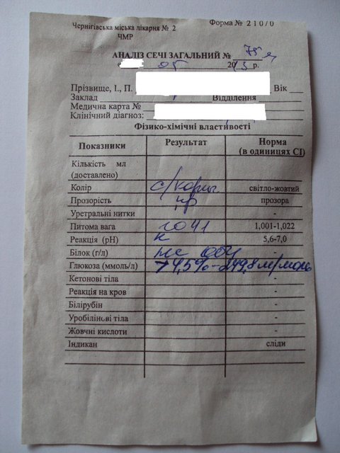 Дабы расшифровать результаты анализов я снова отправился к врачу-терапевту. По словам доктора Мохонько А.В. анализ мочи в целом нормальный, а вот количество сахара очень завышено. Медсестра, сидящая рядом, поинтересовалась у меня, не сдал ли я ненароком анализ в плохо вымытой баночке из-под варенья. Я ответил, что сдавал анализ в специальном контейнере. Доктор спросил, нет ли у меня диабета, и после моего отрицательного ответа посоветовал пересдать анализ. Сказал, что в случае таких же результатов нужно будет полностью обследоваться. Хотя все же склонялся к тому, что это какая-то ошибка.