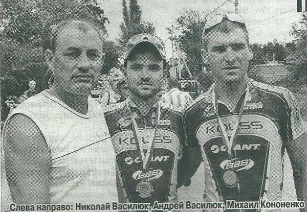 Недавно в Феодосии проходил отборочный чемпионат Украины и Европы по велогонкам с раздельным стартом, на котором нежинец Андрей Василюк (на фото), опередив прошлогоднего чемпиона Украины Андрея Гривко, стал чемпионом Украины. Третье место занял нежинец Михаил Кононенко (на фото).