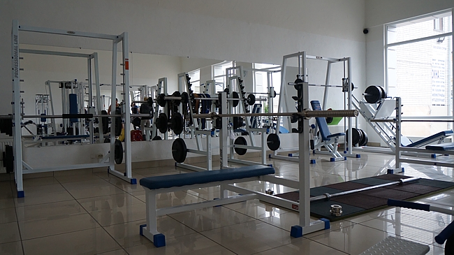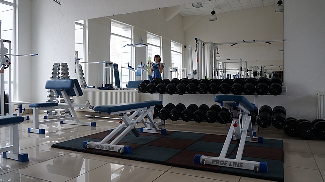 Огромный, светлый тренажёрный зал с высотой потолков 6 м! и площадью 140 м2 оснащён профессиональной линией силовых тренажёров «InterAtletika», среди которых Вы найдёте такие популярные, но очень редкие в залах Чернигова тренажёры, как Гакк-машина, тренажёр для тяги Т-грифа, тренажёр для задних дельт и много других. Отличительной особенностью является ещё и то, что наиболее популярные тренажёры, такие как станок Смитта, тренажёр для сгибания ног, верхняя тяга, горизонтальная тяга, представлены в двух экземплярах. Зал по достоинству оснащен силовыми тренажерами, Вы с легкостью выполните, как базовые упражнения, так и упражнения для изолированных групп мышц В зале Вы будете работать с яркими, удобными блинами «Eleiko» и гантельным рядом на свой вкус и силу от 0,5 кг до 50 кг. В зале имеется полный арсенал всех составляющих отличного зала и что немаловажно - грамотная планировка размещения станков. В общем, оснащение и качество удовлетворит даже самых привередливых атлетов. В арсенале имеются различные атлетические пояса (широкие, узкие, с цепями), лямки, и другие аксессуары. Наличие боксерской груши «REYVEL» подойдет тем, кто не равнодушен к бойцовским видам спорта, даст возможность вспомнить давно забытые навыки, а кому-то приобрести новые.