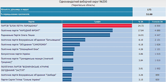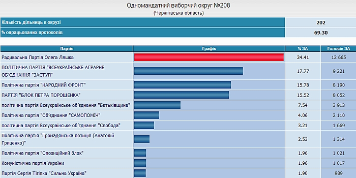 Всего обработано протоколов по Черниговской области - 61.28%