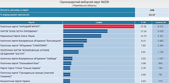 Сколько партии набирают в Черниговской области? Данные ЦИК по состоянию на 16.00