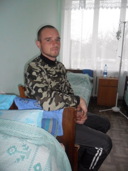 Фото – Меня тепло приняли. У меня претензий никаких нет, наоборот – я всем доволен. Я здесь уже третий день. Уже обвыкся. Сам я родом из Репок. Вернулся из Дебальцево. Пулеметчик я. У меня жена, дочка. Малая рисует мне. Я особо ничего жене и не заказываю, чтобы готовила. Кормят хорошо. Сегодня спал. А до этого ночью просыпался от жуткой головной боли. Правая сторона просто так отбирала, что на стенку лез! Помогают капельницы, уколы. Всё лечение – за счет больницы. Есть место для курения – иди кури.