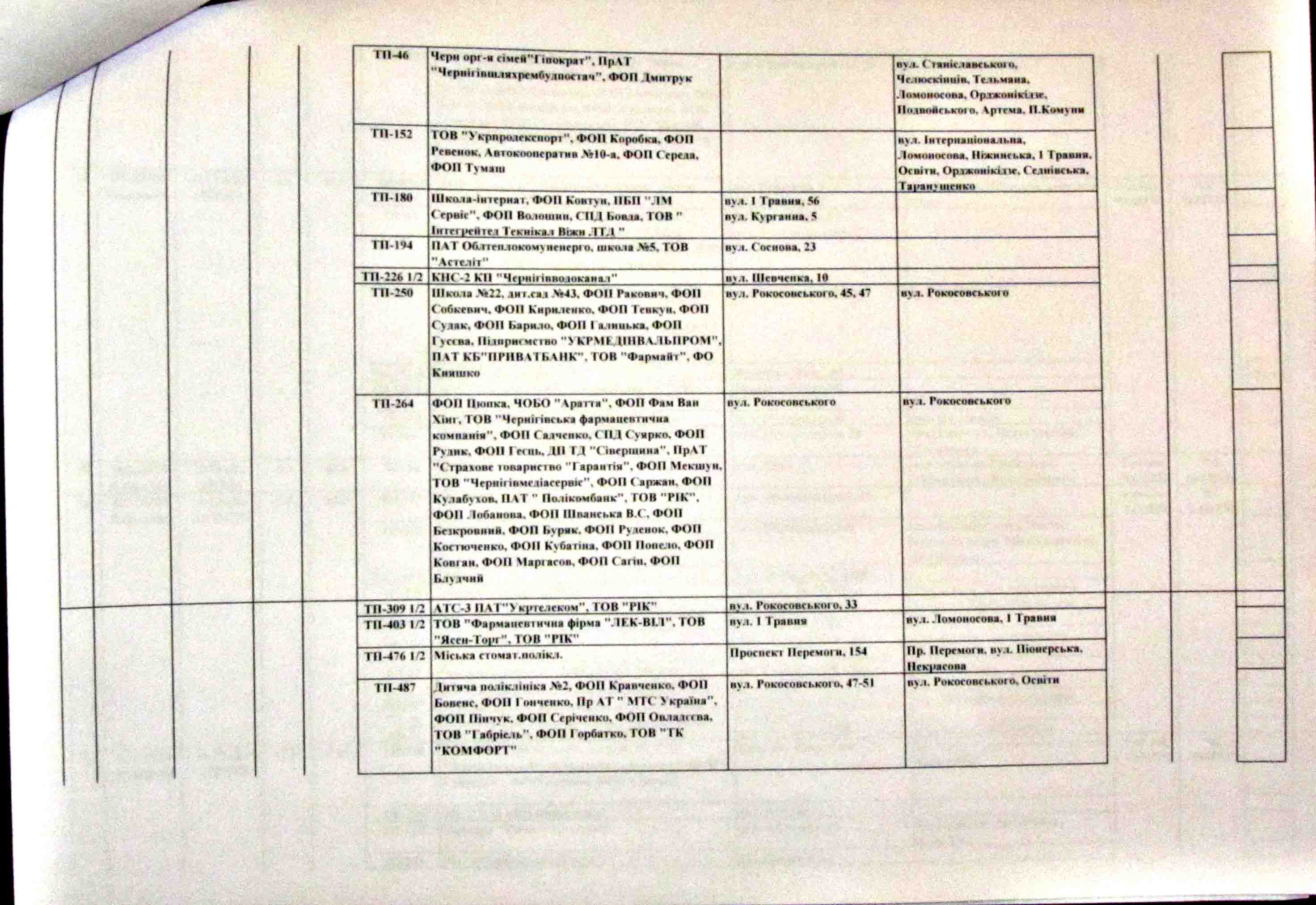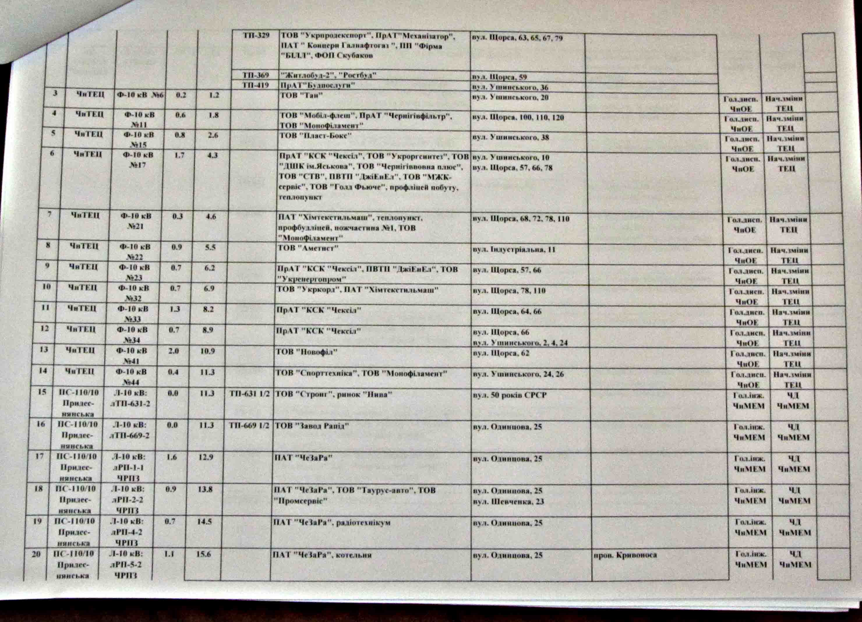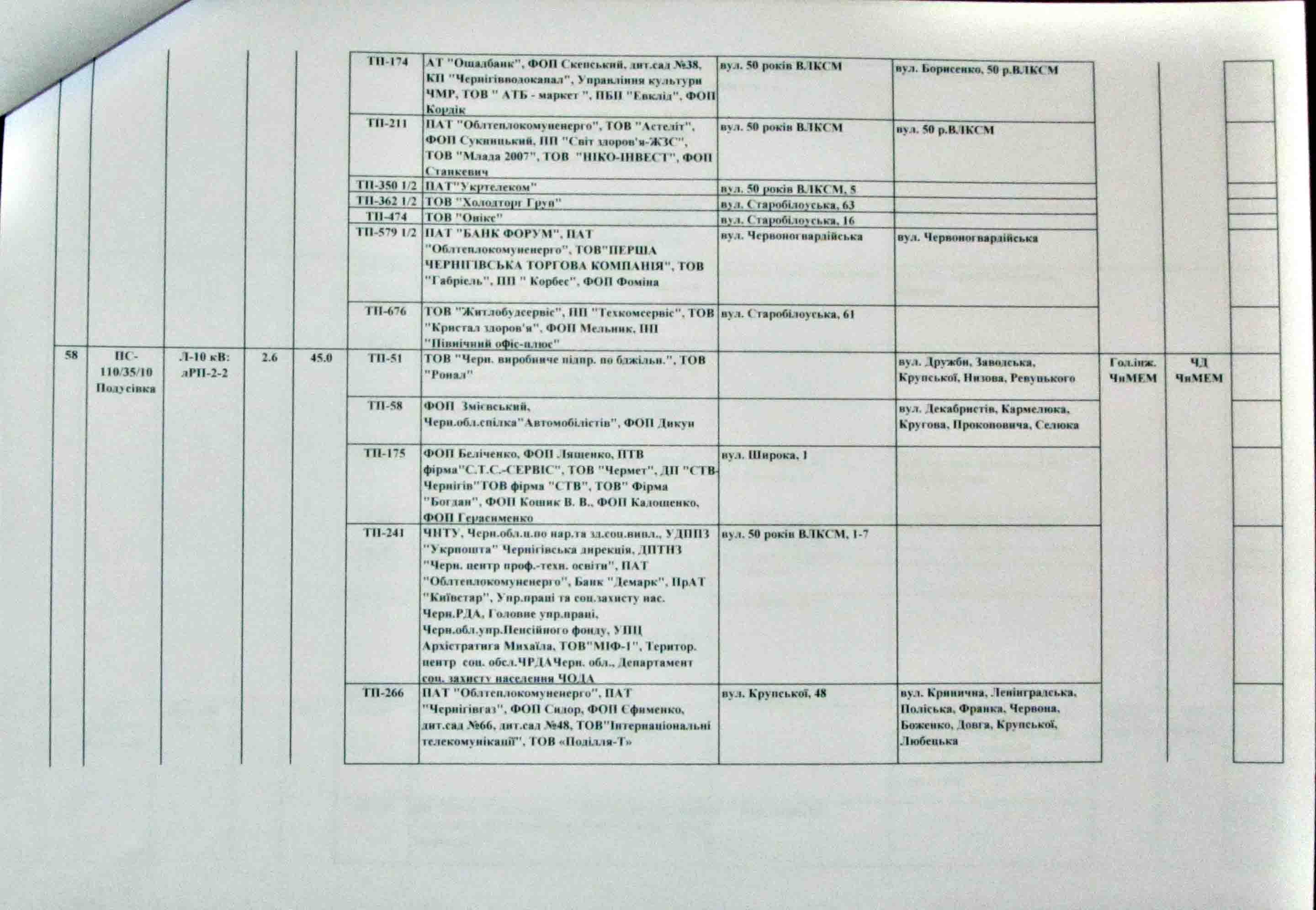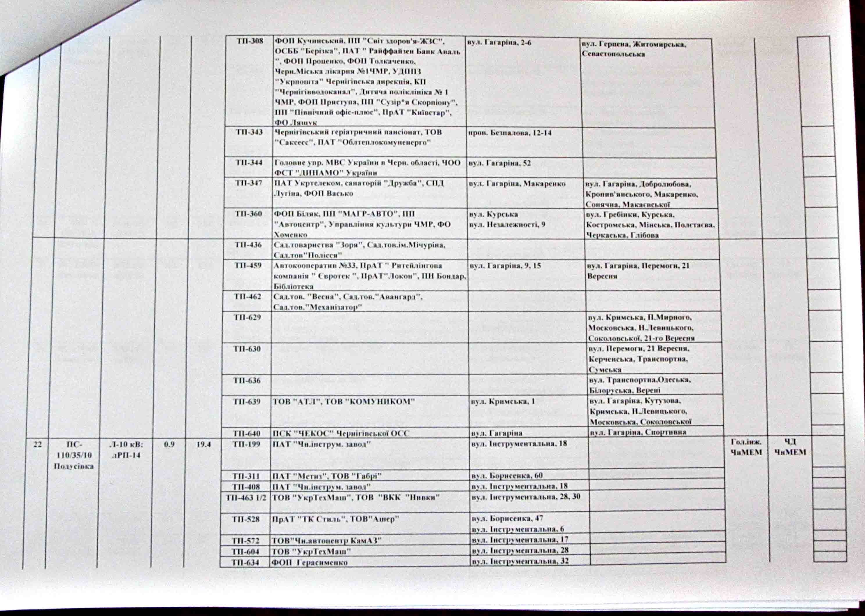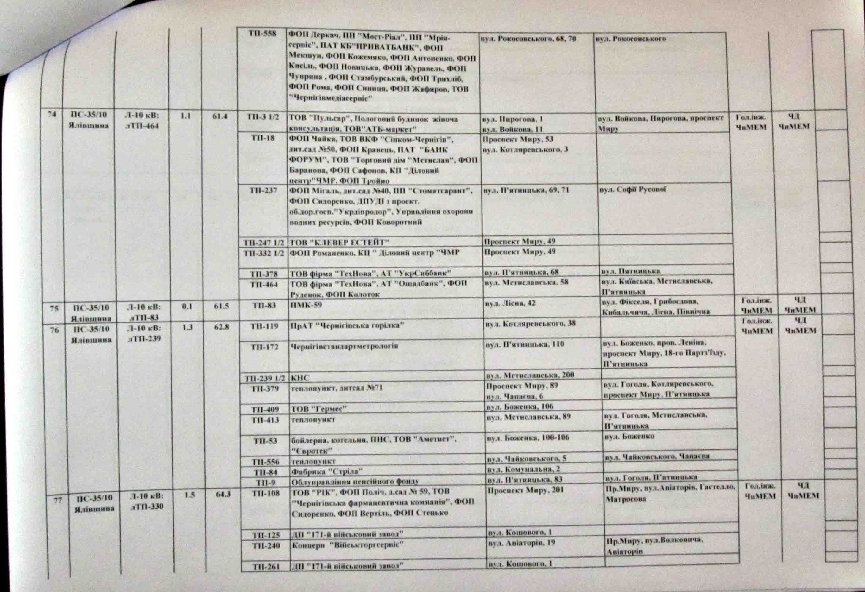 Графики отключения в электронном виде обещали разместить на сайте ПАТ «Черниговоблэнерго» в понедельник, 8 декабря. На данный момент редакция сайта располагает фотокопиями графиков отключения: как сокращенной, так и полной версией. В полной версии графика указаны не только очереди отключения, но и улицы на которых не будет электроэнергии, а также основные объекты, которые на этих улицах расположены.