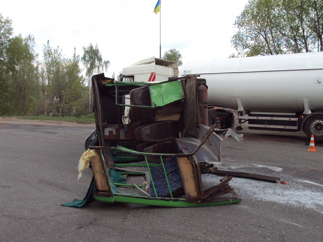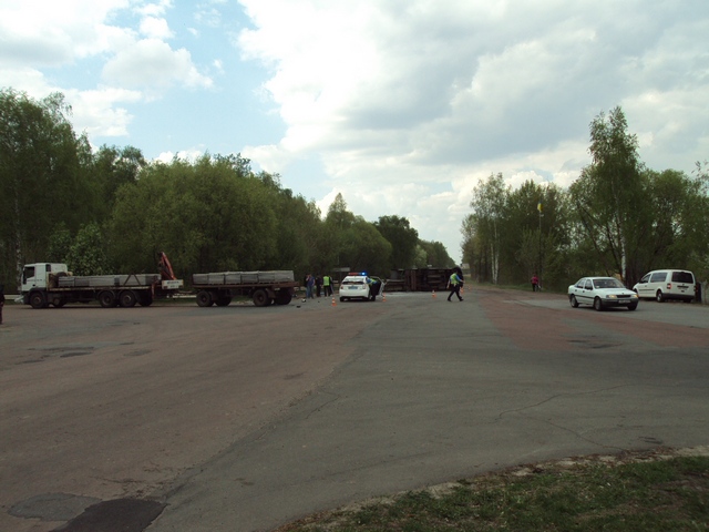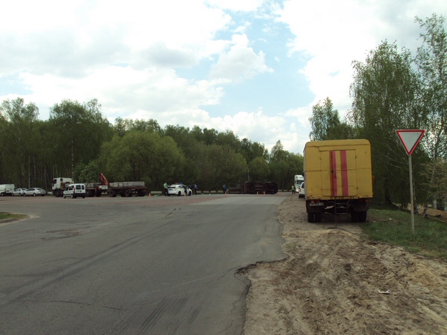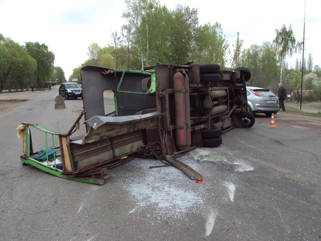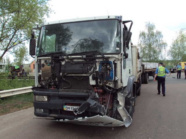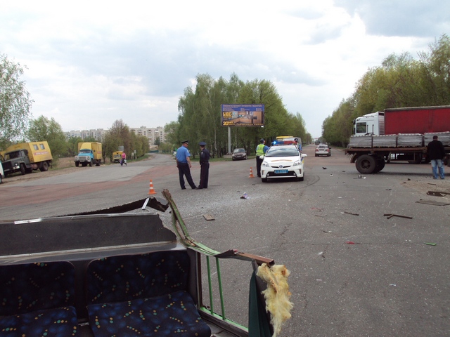 На пересечении проспекта Мира и ул. Кольцевой, недалеко от автозаправки "ОККО" произошло ДТП с участием грузовой фуры с сумскими номерами и маршрутным такси № 42. По словам водителя маршрутки по имени Юрий, он ехал в направлении села Равнополье, Черниговской области по главной дороге, а водитель грузовой фуры, не осмотревшись по сторонам, выехал на главную дорогу на проспект Мира с Кольцевой улицы, зацепив кабиной своего автомобиля заднюю часть маршрутки. В результате ДТП пострадал один человек - женщина, которая ехала в маршрутке № 42. Водители транспортных средств, попавшие в ДТП, не пострадали.