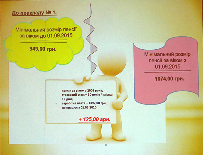 Согласно действующему законодательству, с 1 сентября 2015 года размер прожиточного минимума для лиц, утративших трудоспособность, увеличен с 949 до 1074 гривен. Это, соответственно, повлияло на повышение пенсий, размеры которых определяются прожиточным минимумом. Кому и насколько увеличили пенсию рассказали в Черниговской обладминистрации.