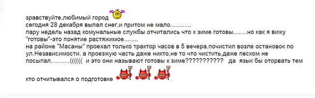 Понедельник 28 декабря 2015 года стал для Чернигова по-настоящему первым зимним днем и запомнится многим небывалым снегопадом, который начался еще ночью. Утром у многих автомобилистов были проблемы из-за значительного снежного покрова. Жители города жаловались на то, что дороги не убраны, но мало кто знает, что коммунальщики начали работать еще в 3 часа ночи…