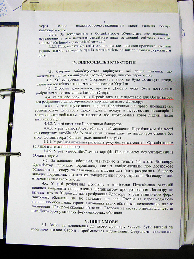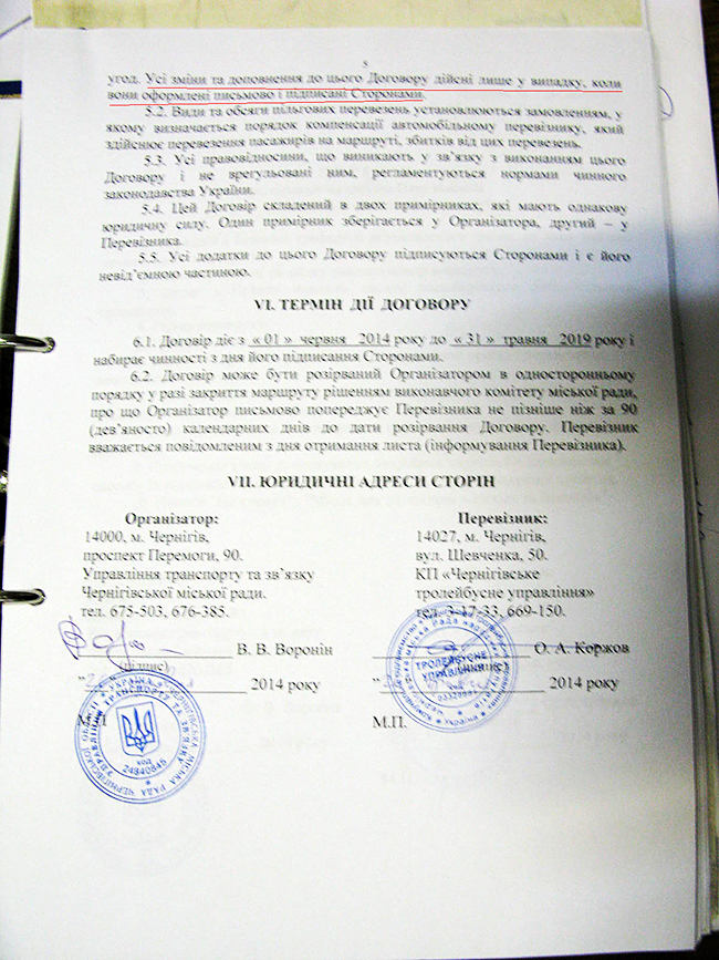Интересно то, что «времена Коржова» закончились только две недели назад! А вот договор, составленный в июне 2014 года действителен по конец мая 2019 года! И смена руководителя совершенно не означает, что договор можно нарушать или необходимо перезаключать. Мало того, время начала работы маршрута – 6.00, согласно действующих норм, означает не то, что автобус в это время выйдет из парка, а то, что начнет движение с конечной остановки маршрута. Точно так же 21 час – время, когда автобус, высадив пассажиров на конечной остановке, поедет на место ночного хранения. Мало того, данное требование черным по белому прописано в договоре и скреплено печатями сторон!