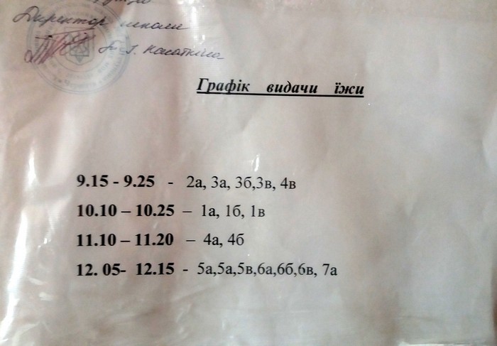 Директор школы №2 Тамара Ивановна Касаткина подтвердила, что дети, и не только школы №2, а во всех школах города, сначала питались на родительские 4 гривны. На общем родительском собрании директор школы №2 довела до родителей, что КП «Школьное» не выиграло тендер, но этот вопрос находится в процессе решения. На сегодняшний день, с 20 сентября дети получают полноценное горячее питание на сумму 11,80 гривен.