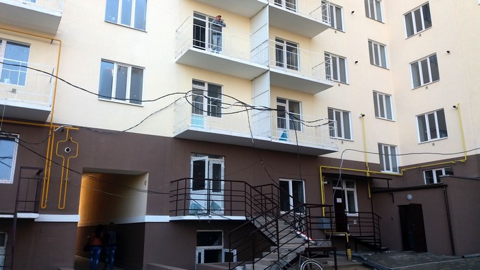 Некоторые люди, приехавшие из Луганска, Донецка, уже живут в доме, т.к. по временной схеме в их квартиры был сделан доступ воды и электроэнергии. Мы стараемся идти навстречу людям, учитывая их пожелания по реконструкции, перегородкам и т.п. Кроме того, на материалах мы не экономим. Человек вселяется в квартиру, и в ней уже установлена добротная бронированная дверь украинского производства, на полу -стяжка, на стенах – штукатурка, качественные украинские окна WDS, батареи турецкого производства, котлы немецкой фирмы «Protherm».