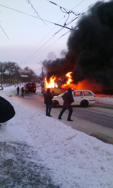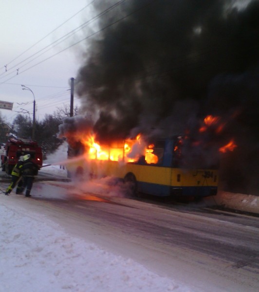 Недавно в городе Чернигове во время движения общественного транспортного средства возник пожар.