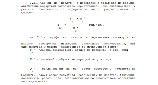 В то же время порядок определения тарифов на проезд в автобусах регламентирует «Методика розрахунку тарифів на послуги пасажирського автомобільного транспорту» утвержденная приказом Минтранса №1175 от 17/11/2009 года.
