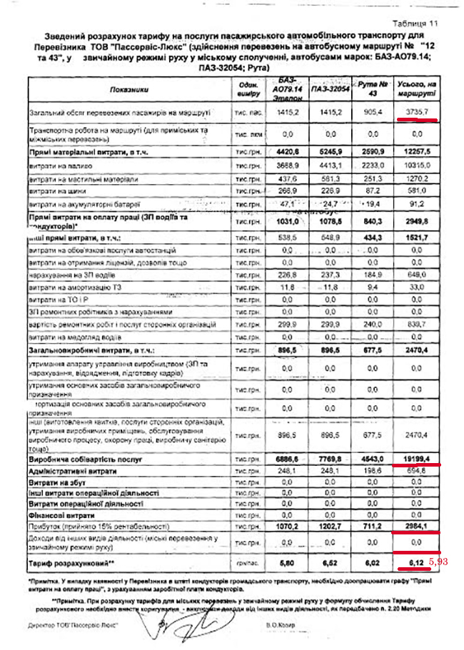 Нет никаких оснований предполагать, что по маршруту №12 количество пассажиров уменьшилось в 3,5 раза. Поэтому подставляя в расчеты указанное количество пассажиров (и, даже при заявленных затратах на маршрут) получаем стоимость проезда в 2,32 грн. вместо заявленных 5,98 грн.!