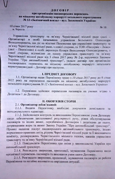 В декабре 2016 года городская власть с гордостью доложила о проведении конкурса поключевым автобусным маршрутам Чернигова