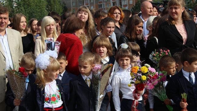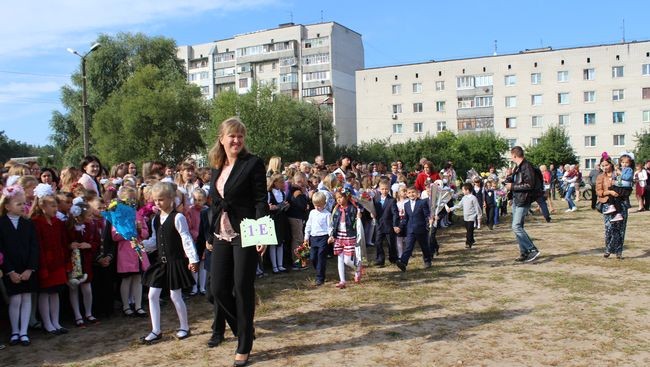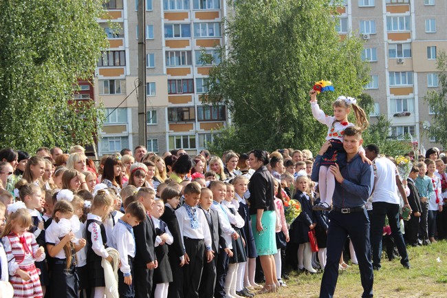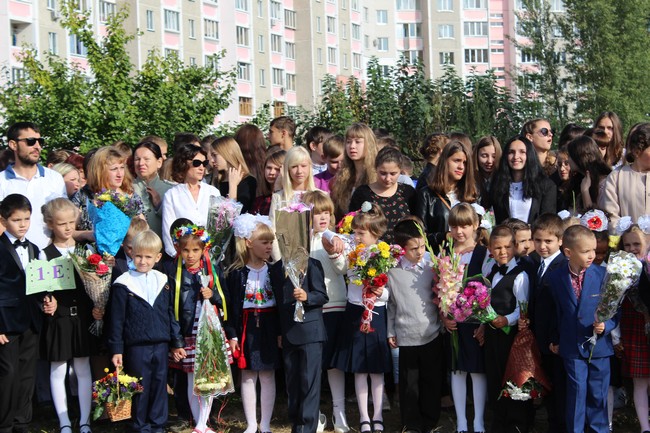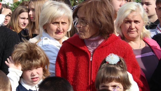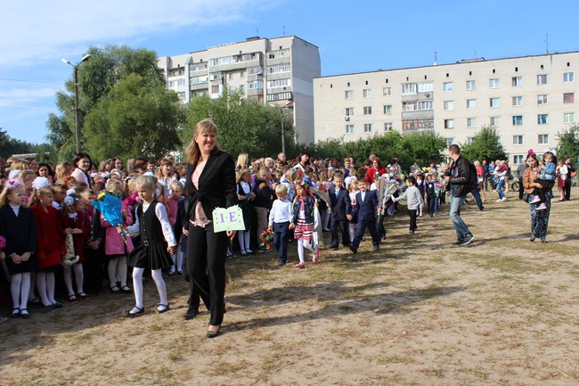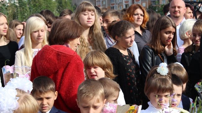 Привела сьогодні свою дочку Анну-Марію у 1-й Е клас (класний керівник Ольга Штандур), 72-річна мати Валентина Підвербна. Побачивши фотоапарати і відеокамери, вона намагалася сховати свою дочку, простоявши до початку урочистостей за шкільною колоною. Потім, все ж їй довелося вивести дівчинку на загальний огляд. Анна-Марія виглядала акуратно, в синьому сарафані і білій блузі, але відрізнялася неспокійною поведінкою і була вищою на голову за своїх однолітків.
