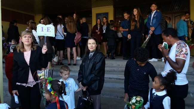 У керівника 1-Е класу в цьому році справжній інтернаціональний клас. Привів до першого класу свою дочку Джастлін 43-річний Майкл, який родом з Нігерії, але давно вже живе у Чернігові в районі Масани. Старший син Діма буде вчитися в 7-му класі.