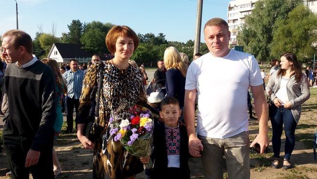 А ось ця пара Євген і Любов Шеховцови ростить другого майбутнього школяра (поки Олексію 1,5 рочки), так як старший 7-річний братик Олександр сьогодні пішов у перший клас.