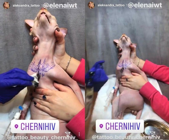 Мода на татуировки на животных дошла и до Чернигова. Шквал негодования и споры в интернете вызвали фото из тату-салона Александры Плахтий, где клиентом оказался бесшерстный кот – сфинкс. Животное лежало под анестезией, пока ему на груди набивали художественную татуировку. Энтузиасты настаивают, что подобная процедура ничем не отличается от обычного клеймирования, другие наоборот, отождествляют с жестоким обращением с животным.