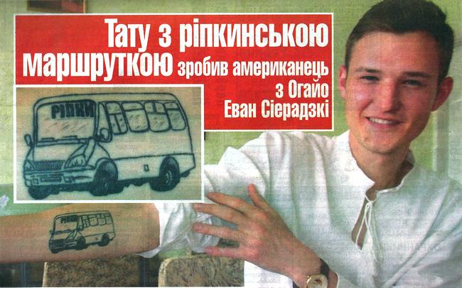 Тату з ріпкинською маршруткою зробив американець з Огайо Еван Сіерадзкі