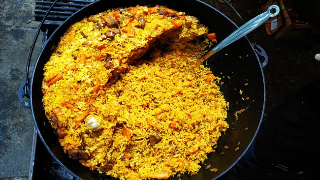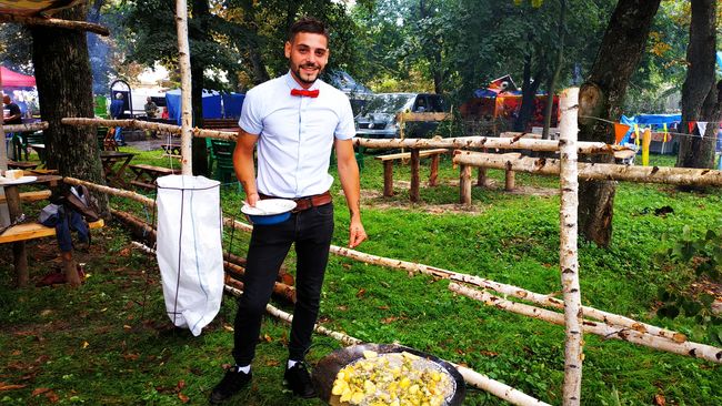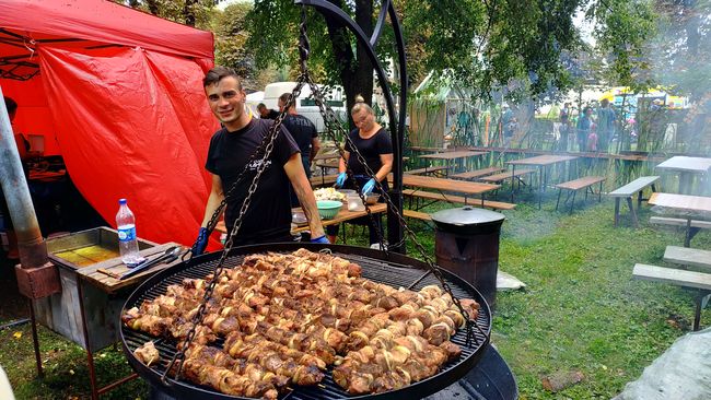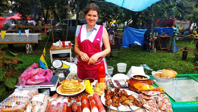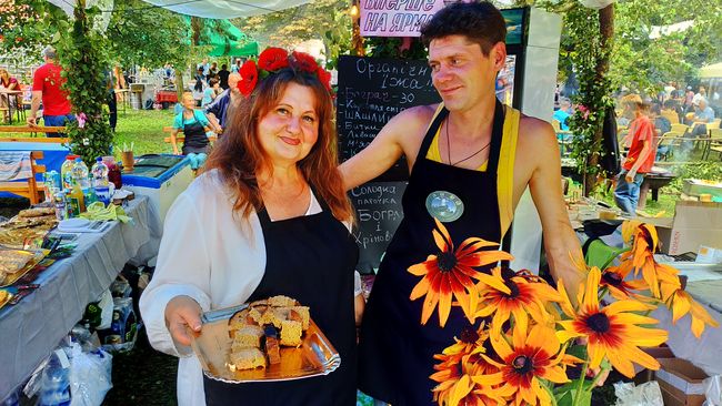 А вже з 12 години почалися «Миколаївські гостини в куренях», де кожна громада або представники фермерського господарства презентували свою продукцію, пригожали бажаючих та нібито змагалися у тому, хто найсмачніше приготує українську чи іншу страву.