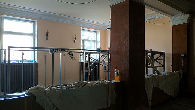- По сути мы начали потихоньку делать ремонт около 3-х лет назад. Здание театра довольно большое и старое. На 3-м этаже много закулисных комнат, гримерных, костюмерных, разных кабинетов для персонала.