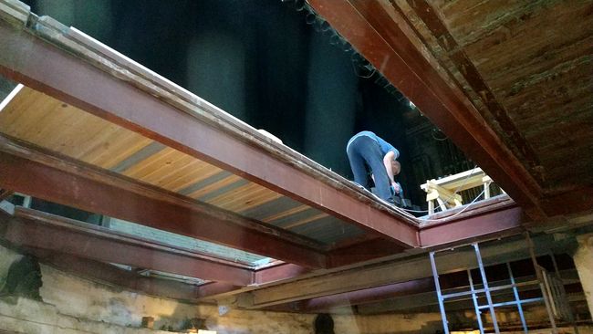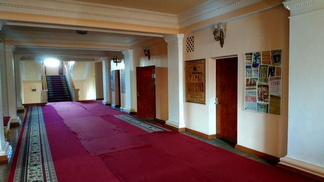 А пока в театре полным ходом проходит капитальный ремонт сцены, обновляются кулуары, фойе и гардеробные. Надо сказать, что сцена не ремонтировалась с самого открытия театра. То есть, планшет сцены, как нам сообщили,не менялся ни разу за 61 год!