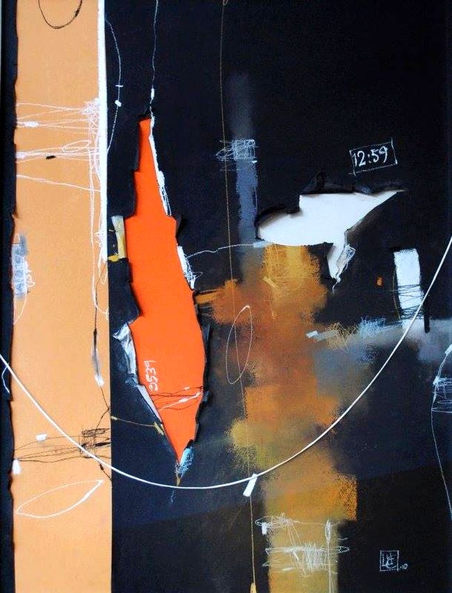 Питання фізики та матеріальної світобудови не так часто стають предметами для мистецтва. Це багато в чому зумовлено неможливістю їх візуального опису – як можна зобразити час чи рух? З часом папір рветься, вигорає під сонцем, потрапляє під випадковий вогонь. На залишках чистого фону проглядаються намальовані образи, будинки чи фігури, які символізують певний простір на фоні якого минає час та рухаються предмети. Ключовим елементом виступає мотузка, яка ніби пов’язує всі ці хаотичні уламки. Чи не є вона образом самого часу, який проявляється у наборі цифр?