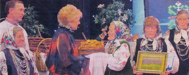 — Спасибі Степану Петровичу. Влітку знімальна група «Фольк-тизіс» побувала у нас в Оленівці. Знімали у Мотронівці біля садиби-музею Куліша. Гостей від душі частували. Стільки наварили й напекли, що ще й залишилося. А 14 листопада, як і обіцяла Оксана Пекун, настала черга зйомок у студії. Наші баби перед поїздкою так переживали, що дехто ніч не спав. І я хвилювалася. Привезли нас, давай підфарбовувать, репетиції, — пригадує Євдокія Федотівна. — Наші берегині трималися стійко. Чотири години зйомок у світлі софітів, мерехтінні лазерних проекторів, командах операторів, звукорежисерів та помічників ведучої. Кілька дублів пісні. А ще треба було кілька годин просидіти в залі з веселим виразом обличчя, аплодувати по команді помічника.