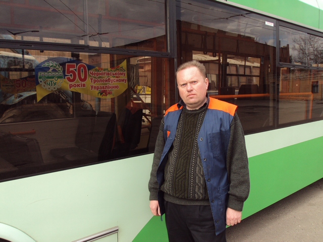 Меня зовут Грищенко Сергей Петрович, кондуктором в ЧТУ я работаю уже 18 лет. По профессии я слесарь, до армии работал на черниговском Радиозаводе. А уже после того как я вернулся из армии Радиозавод, как говорится, начал переживать не самые лучшие времена своего существования. Да и вообще в стране на тот момент был кризис. Поэтому мне пришлось стать на биржу труда. А потом, когда я уже стоял на бирже, я узнал, что автобусный и троллейбусный парк набирает на работу кондукторов. Поскольку я не знал где находится автобусный парк, я направился трудоустраиваться в троллейбусный. Это было 24 марта 1997 года. Именно с этой даты и по сей день я работаю кондуктором.