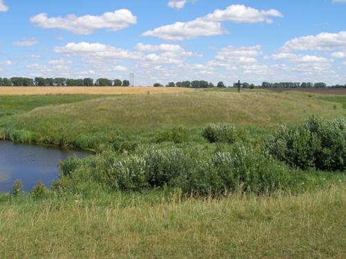 На казацком кургане кроме дубового креста, установленного еще в 2005 году, и памятной плиты нет ничего. Директор Сосновского сельхозпредприятия силами местных энтузиастов восстановил исторический вид кургана. Для этого сделал дамбу — вода поднялась и окружила могилу со всех сторон. Ведь казаки хоронили своих товарищей так, чтобы ни люди, ни звери не смогли потревожить их память, поэтому курган был окружен водой.