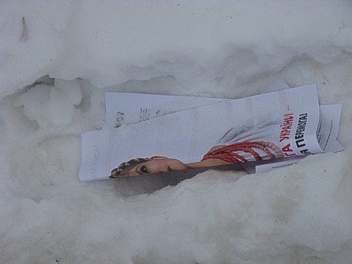 На столбах, деревьях, стенах домов реклама вообще запрещена, но никто из политиков об этом не вспомнил, посылая армию расклейщиков на улицы города. Наказать их не получится. «Мы можем лишь провести профилактическую беседу и попросить больше так не делать, – разводит руками В.Антошин, – законодательство и тут до конца не продумано». Вот и смотрят теперь на нас из под снега милые лица тех, кто все еще обещает очистить нашу страну от грязи.