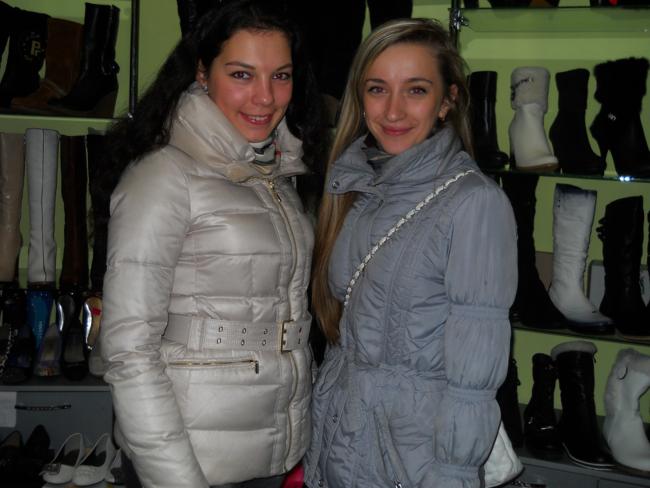 Дарина Рыбчинская и Елена Сесь, студентки: мы из Чернигова, но учимся в Одесской консерватории. Пришли за зимними сапогами. Ищем коричневые или черные на низком каблуке, замшевые. За простенькие готовы заплатить 800 гривен, за «суперкрутые» – 1200.