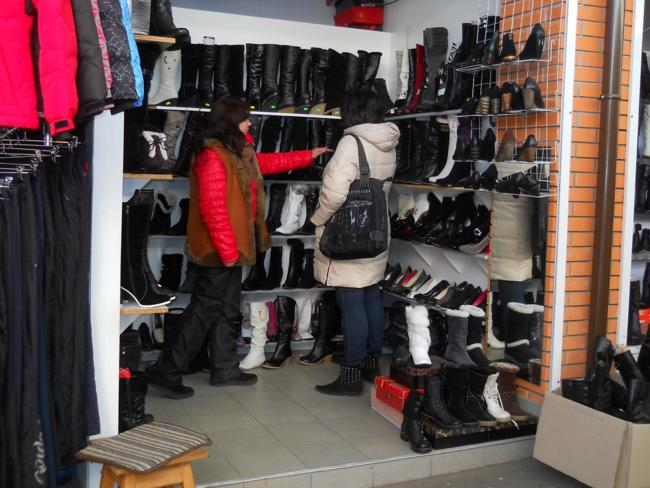 Чем торгуют на этом рынке, кто производитель, и какой разброс цен узнать не удалось. Применять «военную хитрость», по некоторым причинам, не захотел. Обошел, практически, все обувные бутики, но ни в одном из них общаться с корреспондентом не пожелали. Могу предположить пару вариантов. Дела у этих предпринимателей идут настолько здорово, что пиар и бесплатная реклама им не нужны. Вторая возможная причина – качество предлагаемой продукции, которым вряд ли можно гордиться.