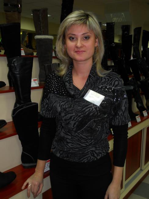 Любовь Лутченко, хозяйка бутиков женской обуви № 212 и 204: уже с начала сентября начали подвозить зимнюю обувь. К середине месяца вся коллекция, а это минимум 300 моделей, была готова к продаже. 80% коллекции – пр-во Польских фирм, все остальное – промышленный Китай и Украина (Харьков, Житомир, Днепропетровск). Цветовая гамма достаточно широкая, практически, на любой вкус. Цены от 600 до 1700 грн. В сезон максимальная скидка 20-30 гривен. В конце января уже можно уступать 100-150. Размеры от 35-го до 40-го. Последние две недели пошел спрос на сапоги-ботфорты. Основной модельный ряд – ботфорты, эксклюзив, классика, комфорт и эконом-класс. Эконом-класс – это, в основном, недорогая отечественная обувь, которая тоже находит своих покупателей.