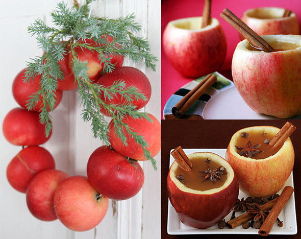 Может яблоки это и не новогодний фрукт, но венок из яблок и яблочная чашка - смотрятся очень празднично.