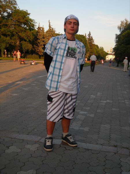 Свой стиль определяет сам. Покупки спонтанные. Главные спонсоры – родители. Иногда спонсирует себя сам из своих небольших доходов. Больше любит вещи брендовые. Любимая вещь в гардеробе – белые кроссовки, надетые на нем сейчас. По поводу других стилей не комплексует.