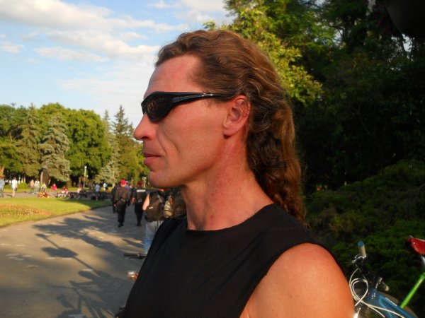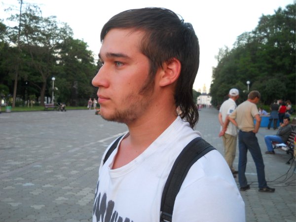 Прическа – обычно длинные волосы (показал фото). В этот раз – «наголо», просто прикол, побрил себя сам станком за 5 гривен.