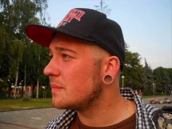 Плаги в ушах – стиль. Одна штука – 40 грн. В одном ухе вместо потерянной плаги – крышка от крема. Дырка в ухе 20 мм. - 100 грн.