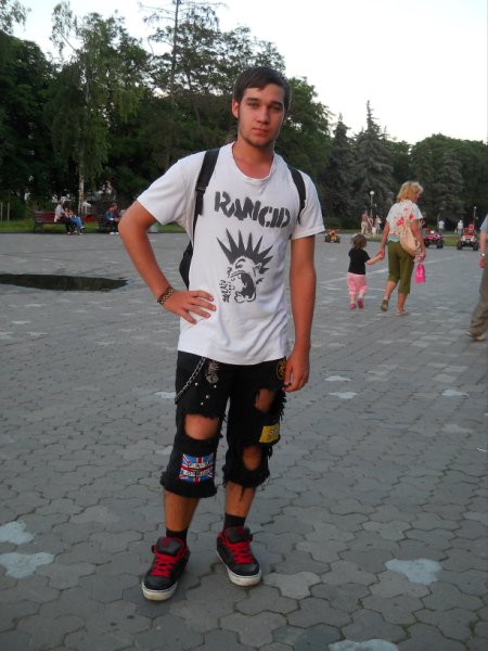 Его стиль – «панк», иногда – «хард-рок». Покупки спонтанны. Любимая вещь гардероба – штаны в клетку. Не наденет кроссовки фирмы «New balans».