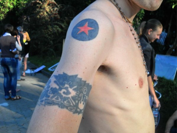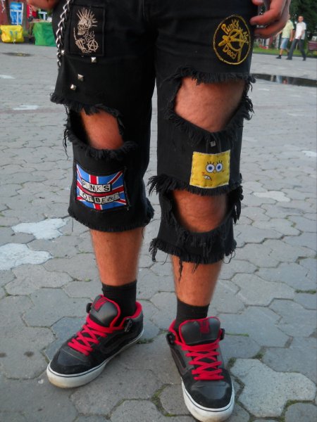 Джинсы – секонд, 10 грн. Дырки прорезал сам. Сам пришил и эмблемы.