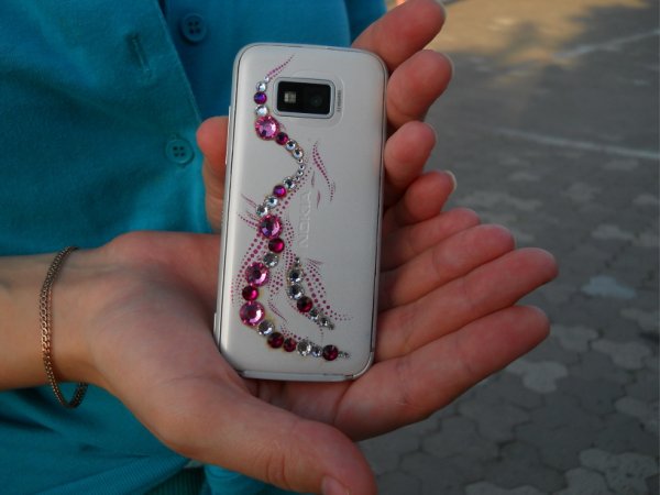 Мобильник «Нокиа». Украшение камнями «Сваровски» – работа подруги.