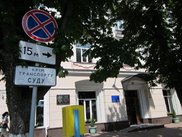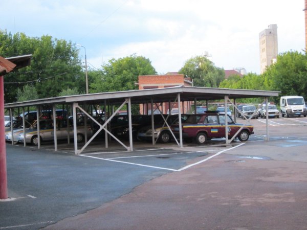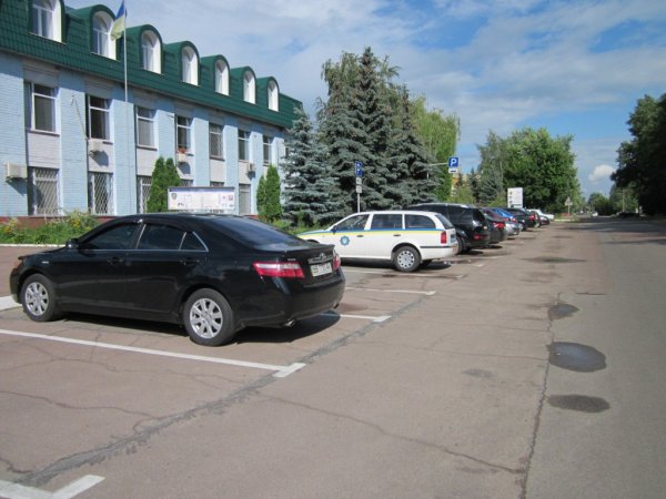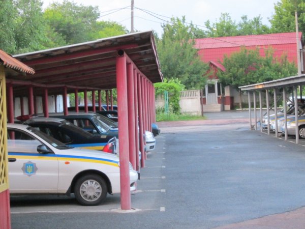 На фото - здание Управления ГАИ в Черниговской области и автостоянка при нем
