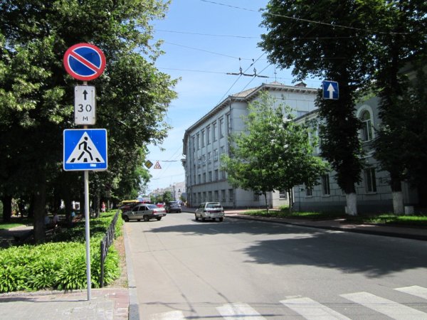 17. Зачем установили свежий знак "Уступи дорогу" через 100 м. прямо напротив бывшего ВИП-Приват банка слева по ходу движения от Красного моста по ул. Воинов-Интернационалистов, которая в данный момент является главной при приближении к перекрестку с Полуботка? При этом, через те самые 100 м. висит знак "Главная дорога" и "Стоп" со стороны госпиталя и ПЕДа? Ведь это прямо противоречащие друг другу знаки...