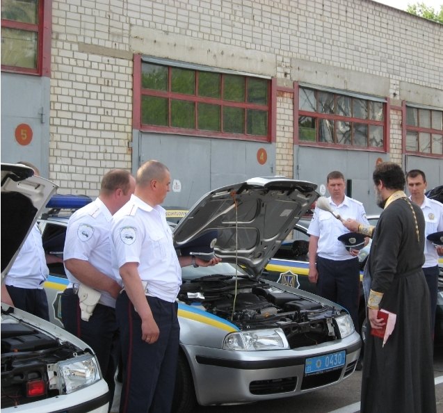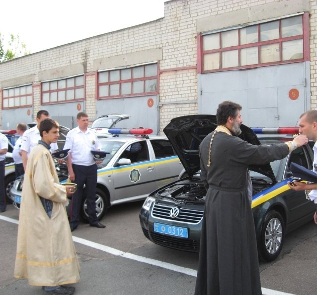 Освящение транспортных служебных средсв ГАИ служителями церкви (фото с сайта http://sai.cn.ua )