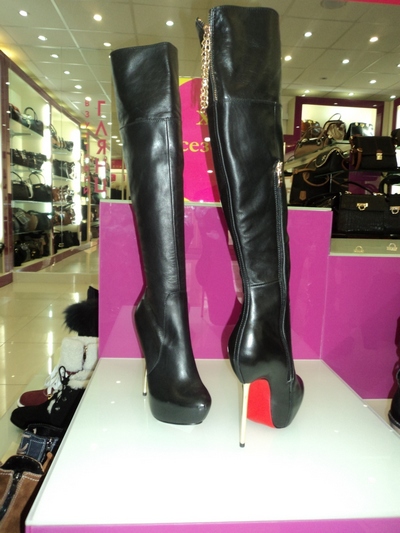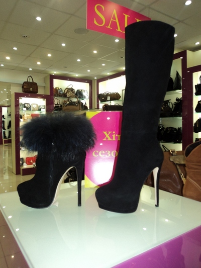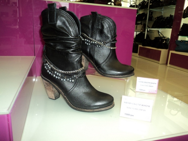 Полусапоги (с мехом) – 1380 грн., черные высокие сапоги на высоком каблуке – 1198 грн.