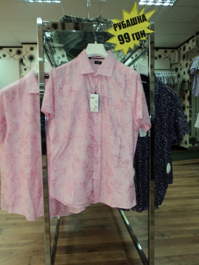 Мужская розовая рубашка – 99 грн;