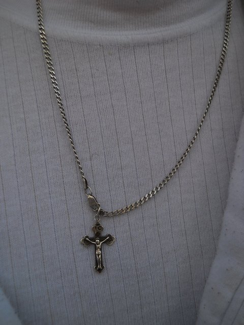 Цепь с крестиком – серебро, с самого рождения, подарок родителей.