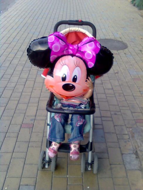 Александр Новаковский катает в коляске Микки Мауса: