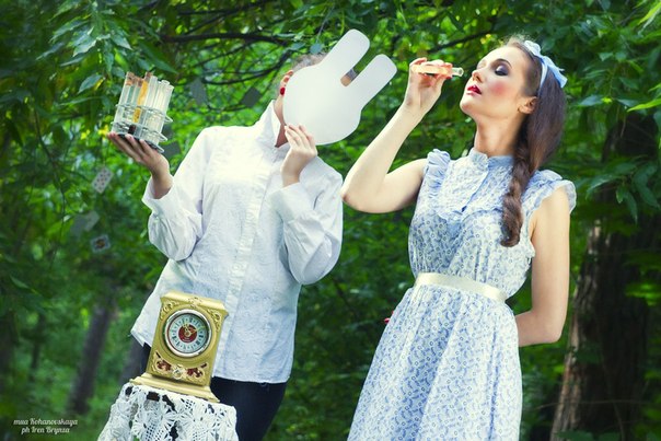 Вдохновение приходит в том числе и от прочтенных книг, одна из таких – "Алиса в стране чудес". По мотивам этого произведения мы делали съемки в Яловщине. Кстати, это одно из моих самых любимых мест для съёмки – там можно найти и песчаный карьер, и лиственные заросли и другие интересные "живые" интерье